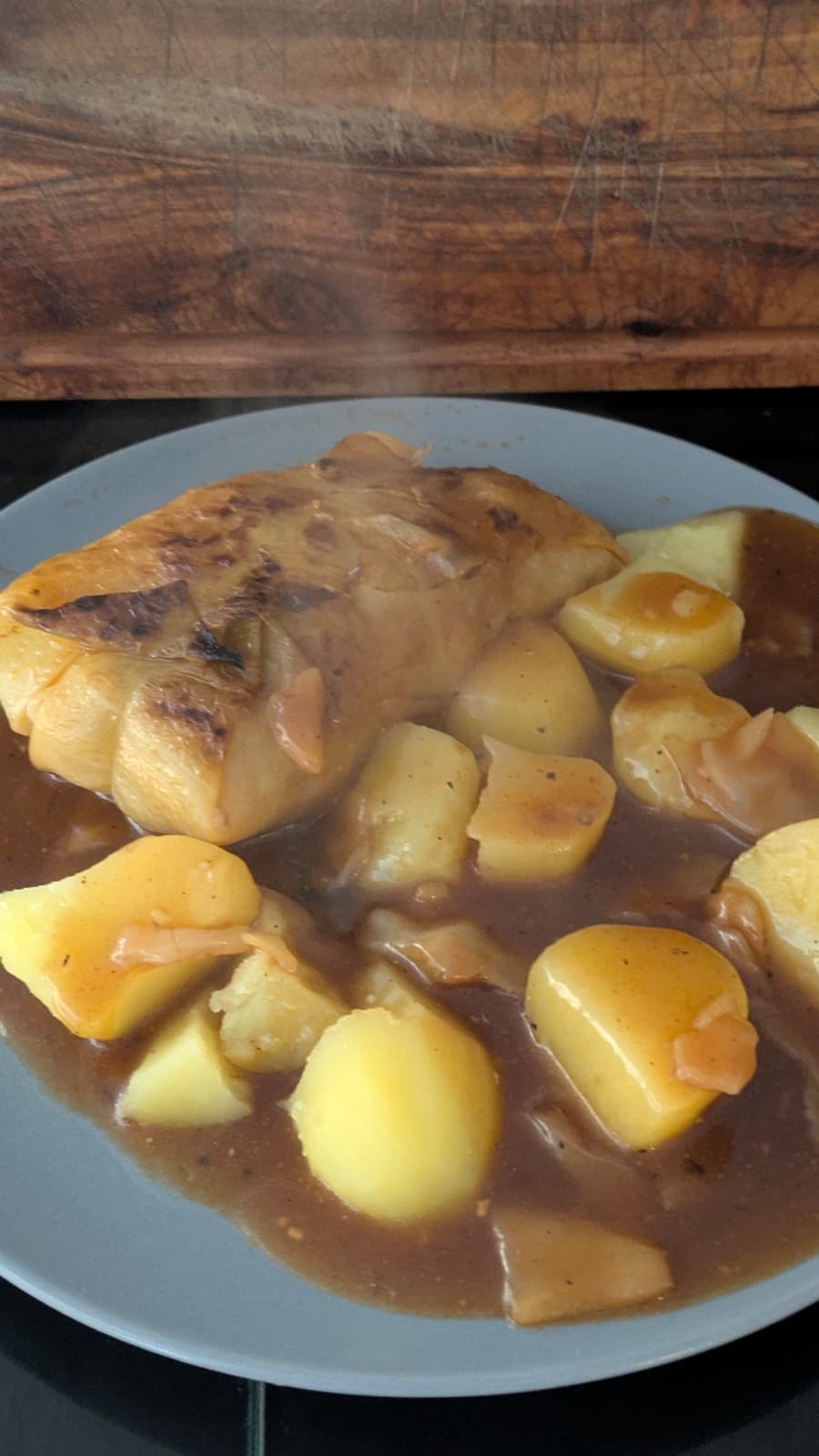 Beilagen: Kartoffelpüree, Salzkartoffeln, Knödel oder frisches Bauernbrot.