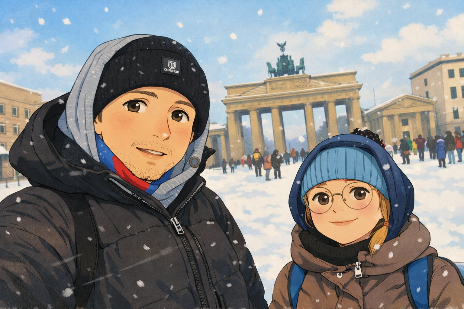 Das Brandenburger Tor im Schnee, den imposanten Reichstag, einen Abstecher zu Madame Tussauds und natürlich den Alexanderplatz. Überall Schnee, Lichter, Menschen – und mittendrin wir zwei, lachend, staunend, unterwegs.